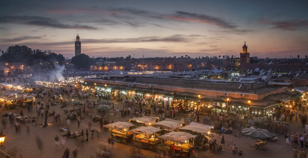 Admirez les jardins Majorelle, explorez les tombes Saadiennes, découvrez la mosquée Koutoubia, flânez dans les souks animés de la médina, et terminez sur la mythique place Jemaa El-Fna, cœur battant de Marrakech.